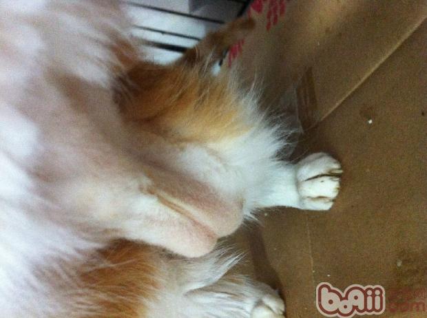 圖中的皮膚是另一只健康肥胖貓咪的下腹部皮膚,雖然也是下垂脂肪,但是飽滿呈淡粉色。通過對(duì)比可發(fā)現(xiàn)明顯的異常。