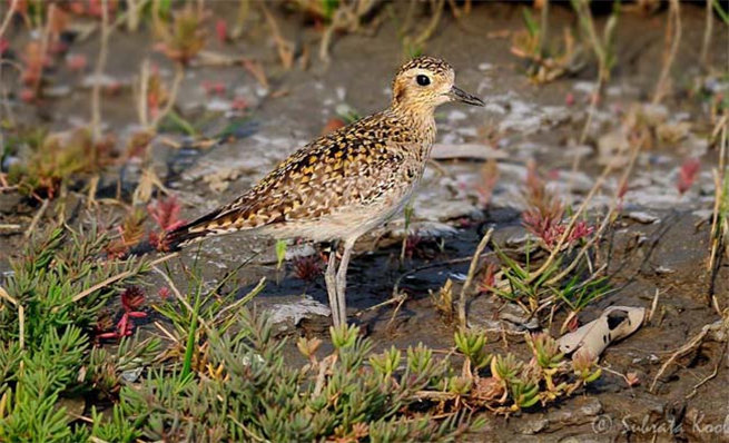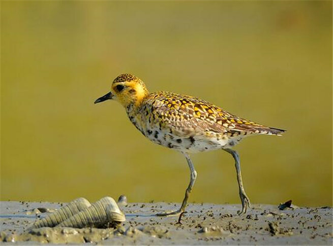 金鸻(學(xué)名:Pluvialis fulva,英文名:Pacific Golden Plover)屬鸻屬的水鳥,又稱金斑鸻、太平洋金斑鸻。金斑鸻繁殖羽下體純黑,上體密雜以金黃色斑點,使整個上體呈黑色與金黃色斑雜狀。體側(cè)有一條白帶自前額開始經(jīng)眉、再沿頸側(cè)而下,與胸側(cè)大型白斑相連,在上下兩色之間極為醒目。單獨或成群活動。棲于沿海灘涂、沙灘、開闊多草地區(qū)、草地及機場,尤其是近海機場。 注:有時歸入美洲金鸻P. dominica(參見鄭作新,1987)。該物種的模式產(chǎn)地在伊斯帕尼奧拉島。